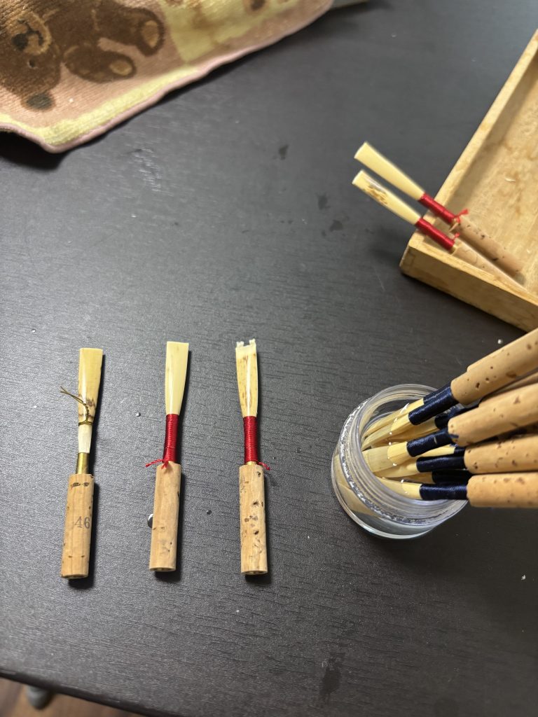 裏話:私のメイキングマシンはナガマツ製。長年リードの研究をされている長松正明さんに製作してもらったものです。型はオリジナル。大学院生の時に1年以上高崎に通いながら何度も型を削り直していただきました。私の理想にとことんお付き合いいただき、数々のリード知識やアドバイスをいただきそのことに今も支えられています。感謝を込めて。